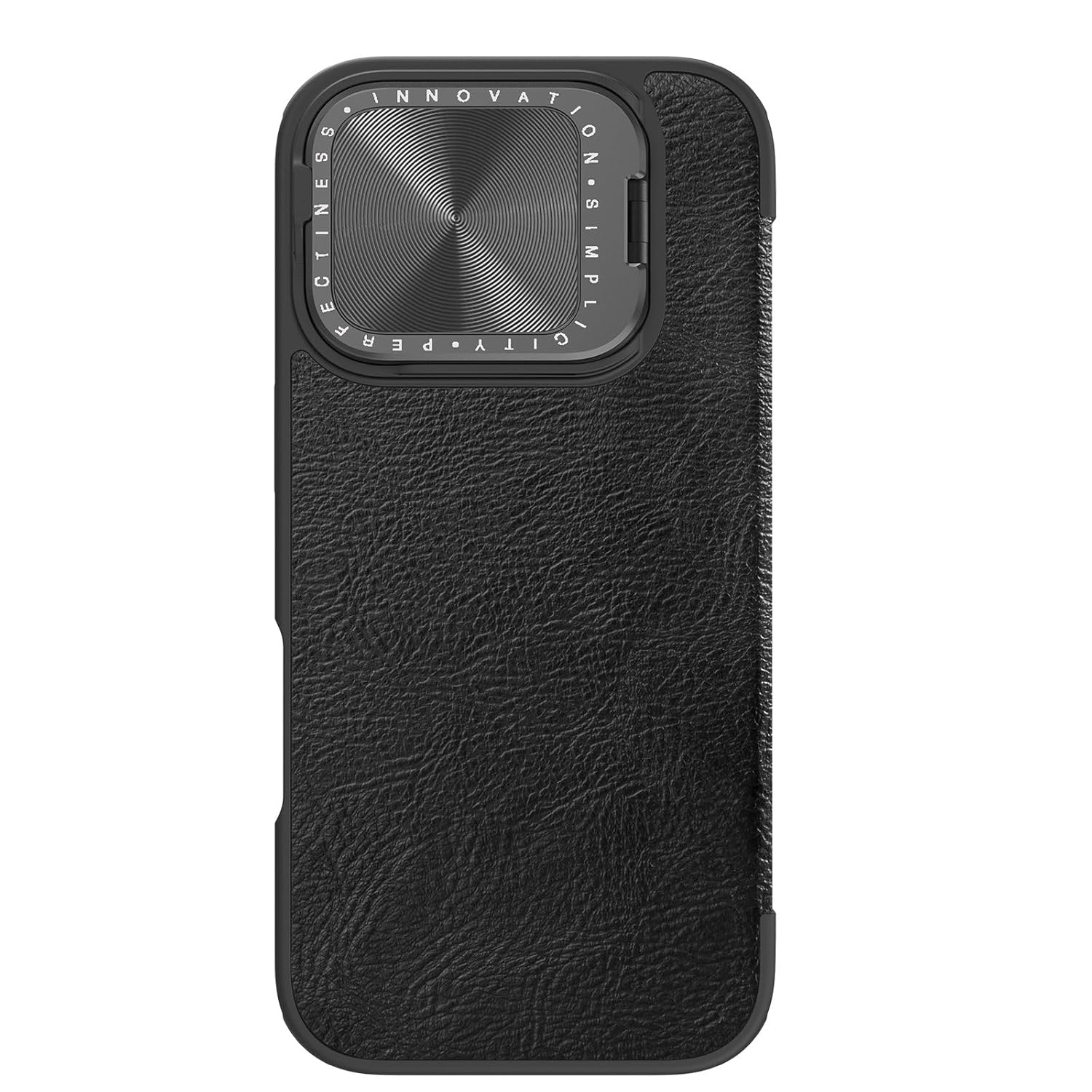 Nillkin Case for Apple iPhone 16 Pro (6.3″ Inch) Qin Prop Leather Lens Protect + Stand Flip Folio + Card Slot 360 Protect Black Color